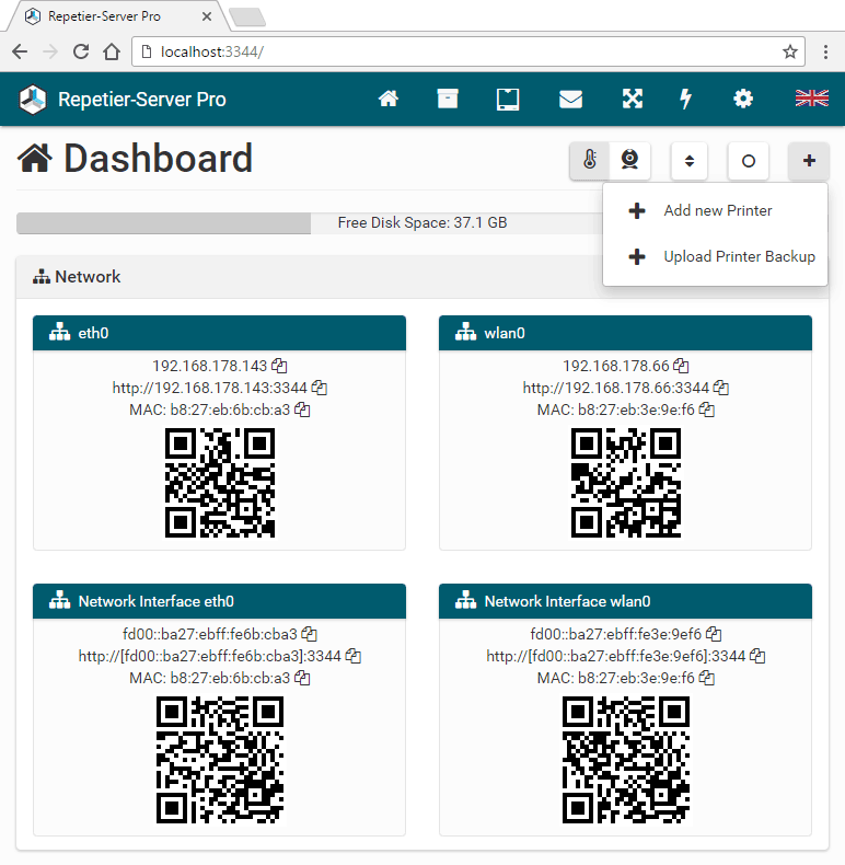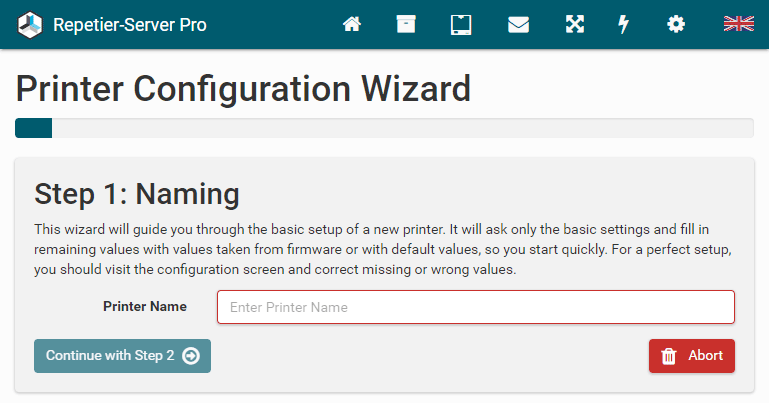 7. Repetier-Server Pro starts automatically a new browser window.