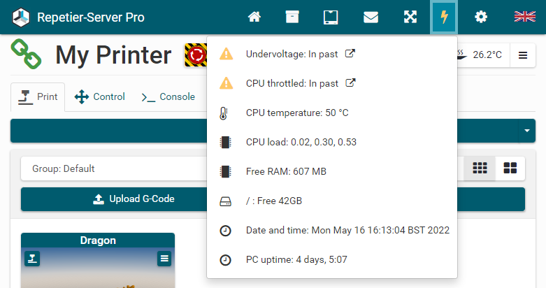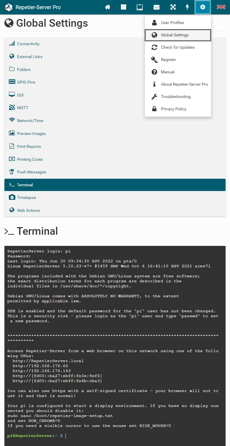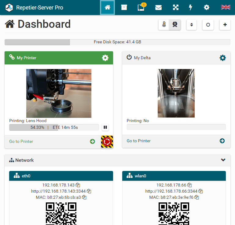 Note: Never just power off the pc running Repetier-Server. Always shut down the os cleanly to not damage the hard disk. and corrupt the filesystem.