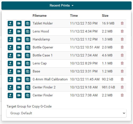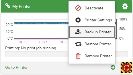 To create a backup file, go to and click Backup Printer in the printer overview.