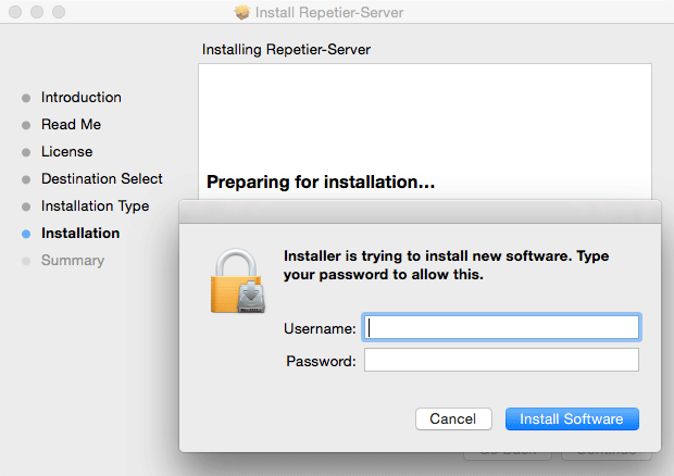 7. Enter your username and password to allow installation and click Install Software.