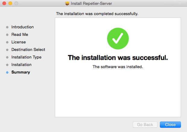 9. Click Close to finish installation.