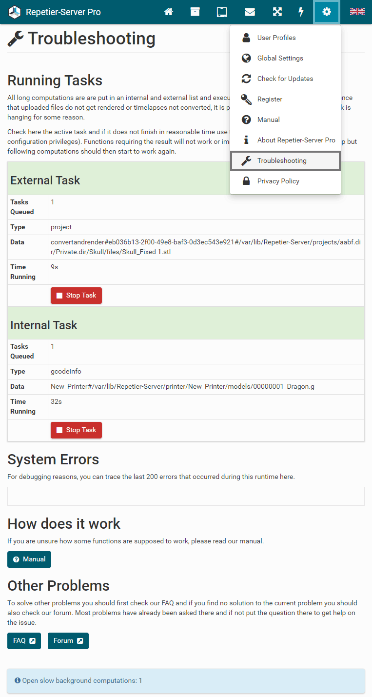 Start, Stop and Restart Repetier-Server Pro