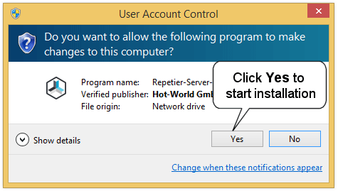 2. Click on Yes to start installation.
