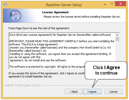 4. Click I Agree to agree to our licence agreement and to continue.